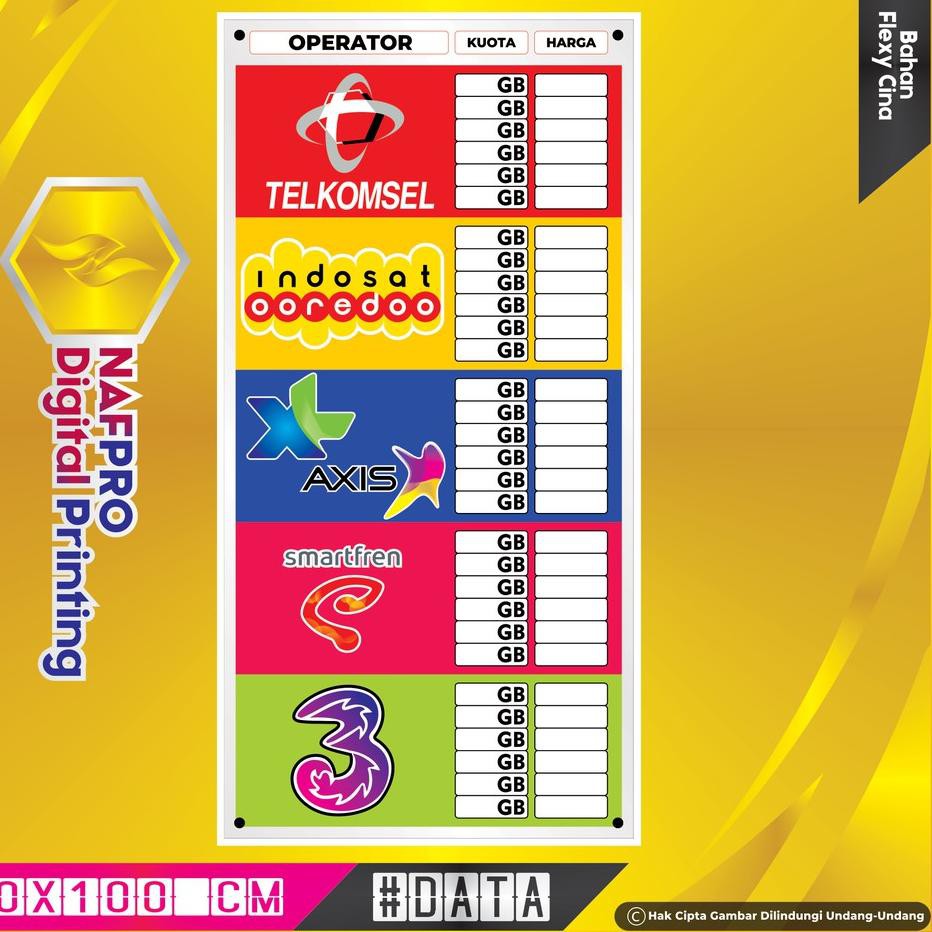 Spanduk Pulsa Banner Tabel Harga Kuota Konter Bisa Tulis Sendiri 50x100 Shopee Indonesia