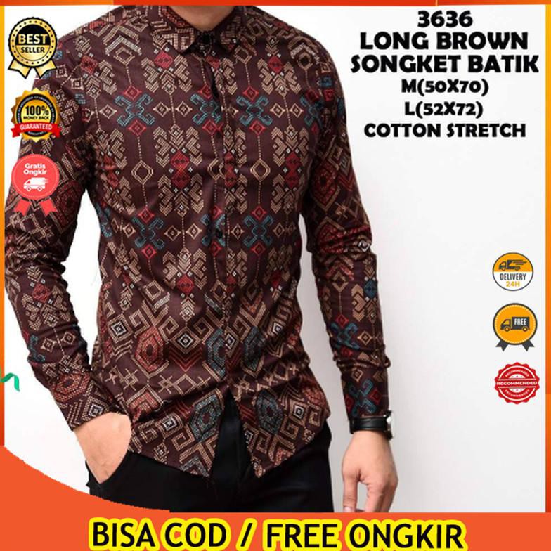 Kemeja Pria Kasual Xl Only Kemeja Batik Songket Pria Panjang Masa Kini Cokelat Xl Shopee Indonesia