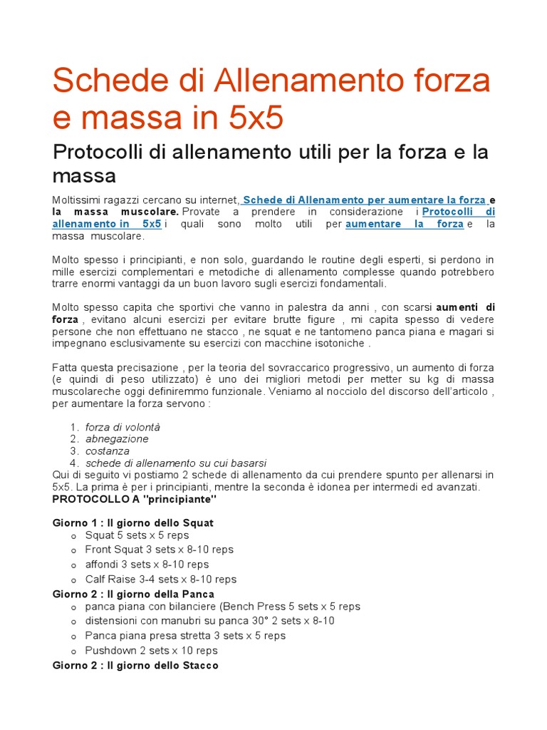 Schede Di Allenamento Forza E Massa In 5x5