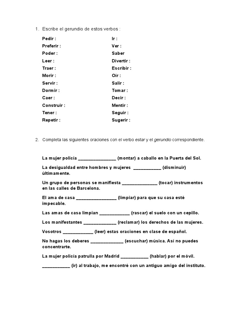 Ejercicios De Gerundio