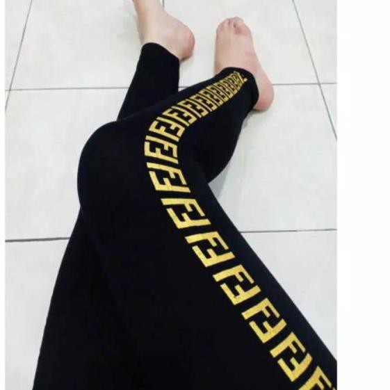 Gb Legging Sport Wanita List Fendi Gaya Tren Masa Kini Murah Meriah Shopee Indonesia