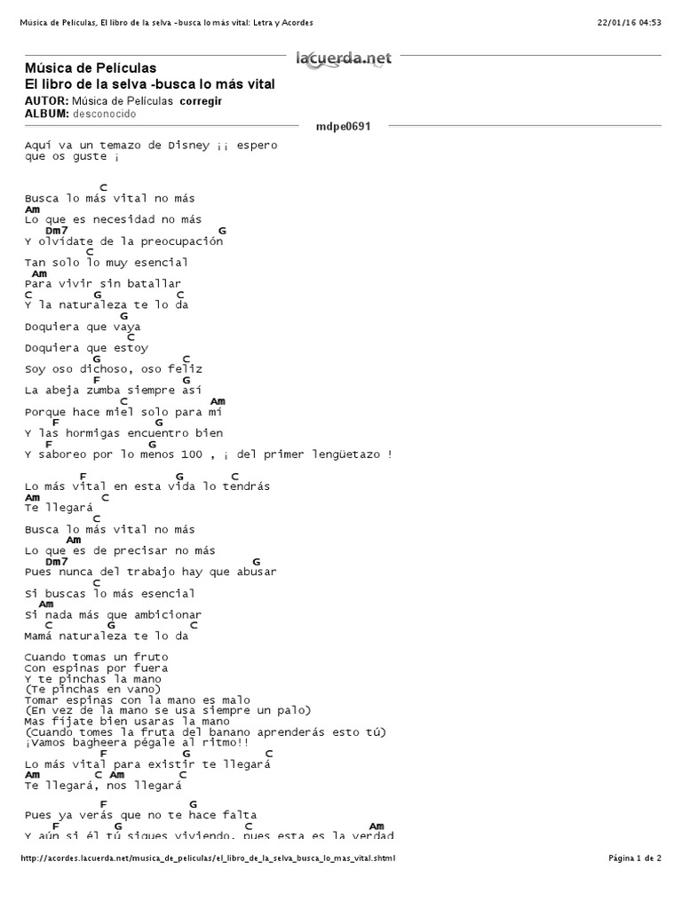Musica De Peliculas El Libro De La Selva Busca Lo Mas Vital Letra Y Acordes El Libro De La Selva Pelicula De 1967