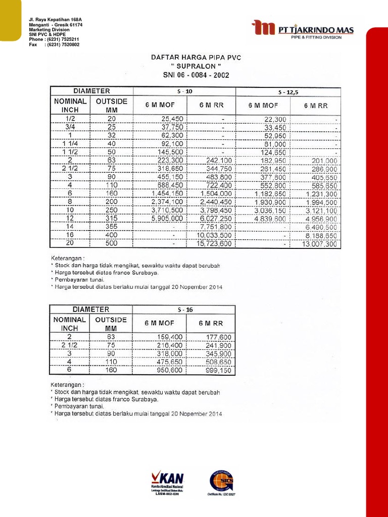 Pt Tjakrindo Mas Price List Pipa Pvc Sni