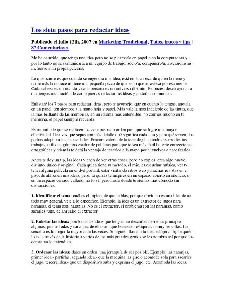 Los Siete Pasos Para Redactar Ideas Publicado El Julio 12th 2007 En Papel Ocio