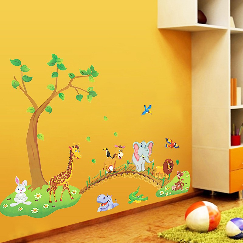 1set Kartun Jungle Lion Gajah Jerapah 3d Wall Sticker Dekorasi Kamar Tidur Anak Shopee Indonesia