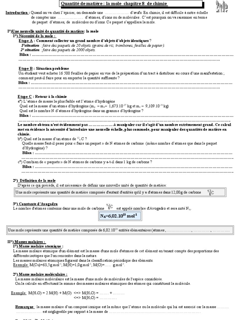 Mole Et Masse Molaire