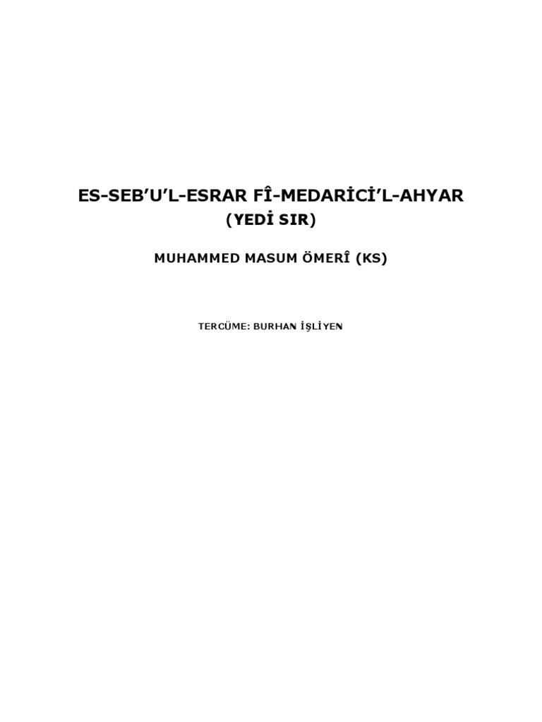 Imam Muhammed Masum Mektubat I Masumiyye Si Ve Irade Meselesine Yaklasimi Alkapida Com
