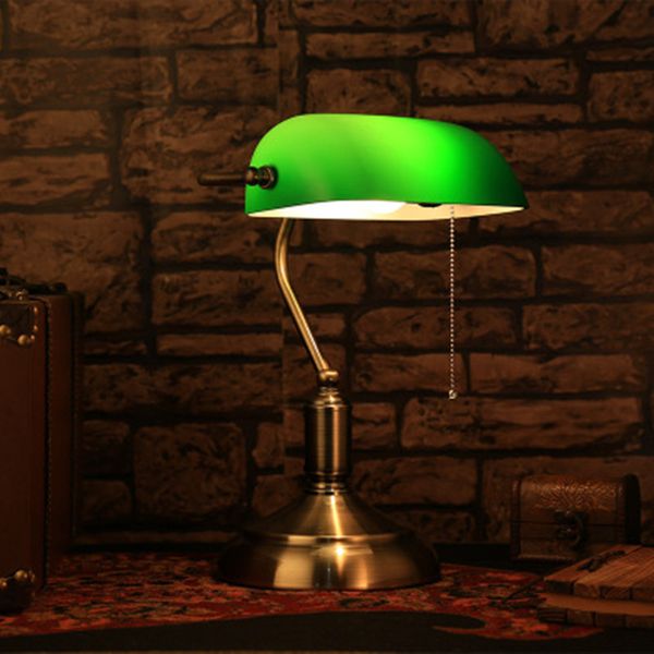 Klasik Vintage Basit Banker Masa Lambasi E27 Anahtari Ile Yesil Cam Abajur Masa Yatak Odasi Lambalari Calisma Ev Okuma Aliexpress